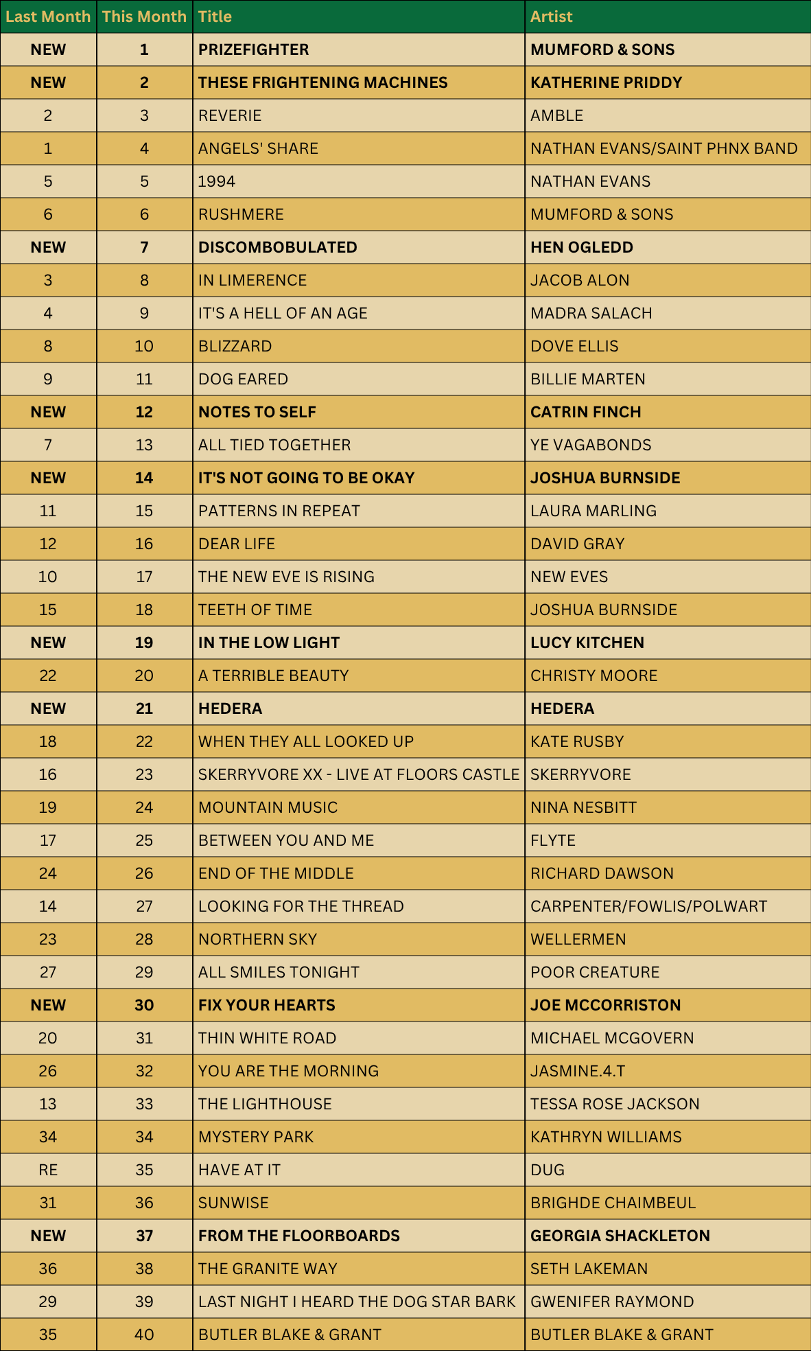 Here are the Official Folk Albums Chart Top 40 for March 2026.